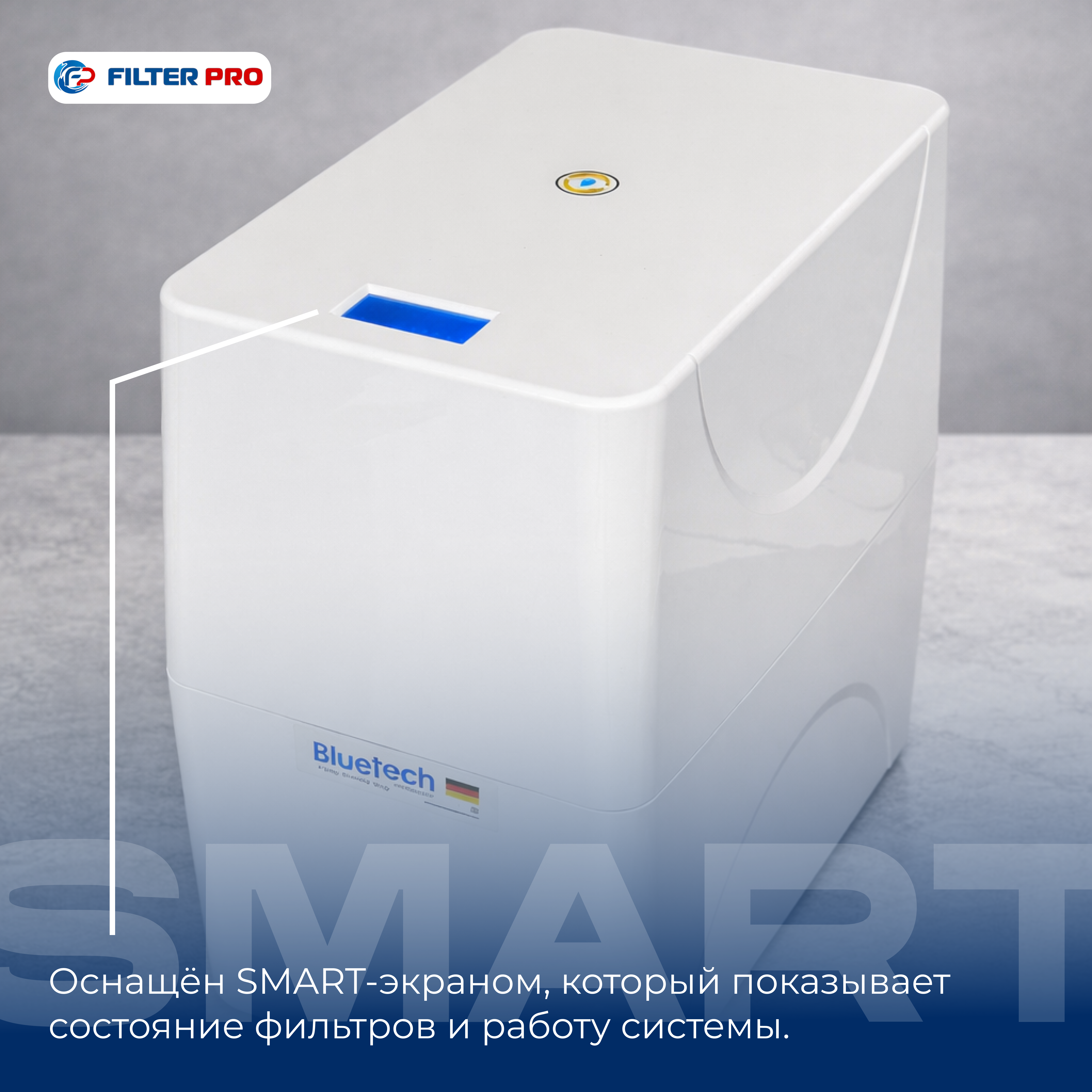 BlueTech Smart — умная система очистки воды для квартиры, дома и офиса: сочетает многоступенчатую фильтрацию и электронный контроль работы.